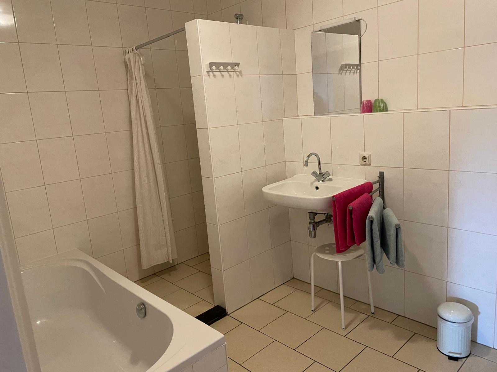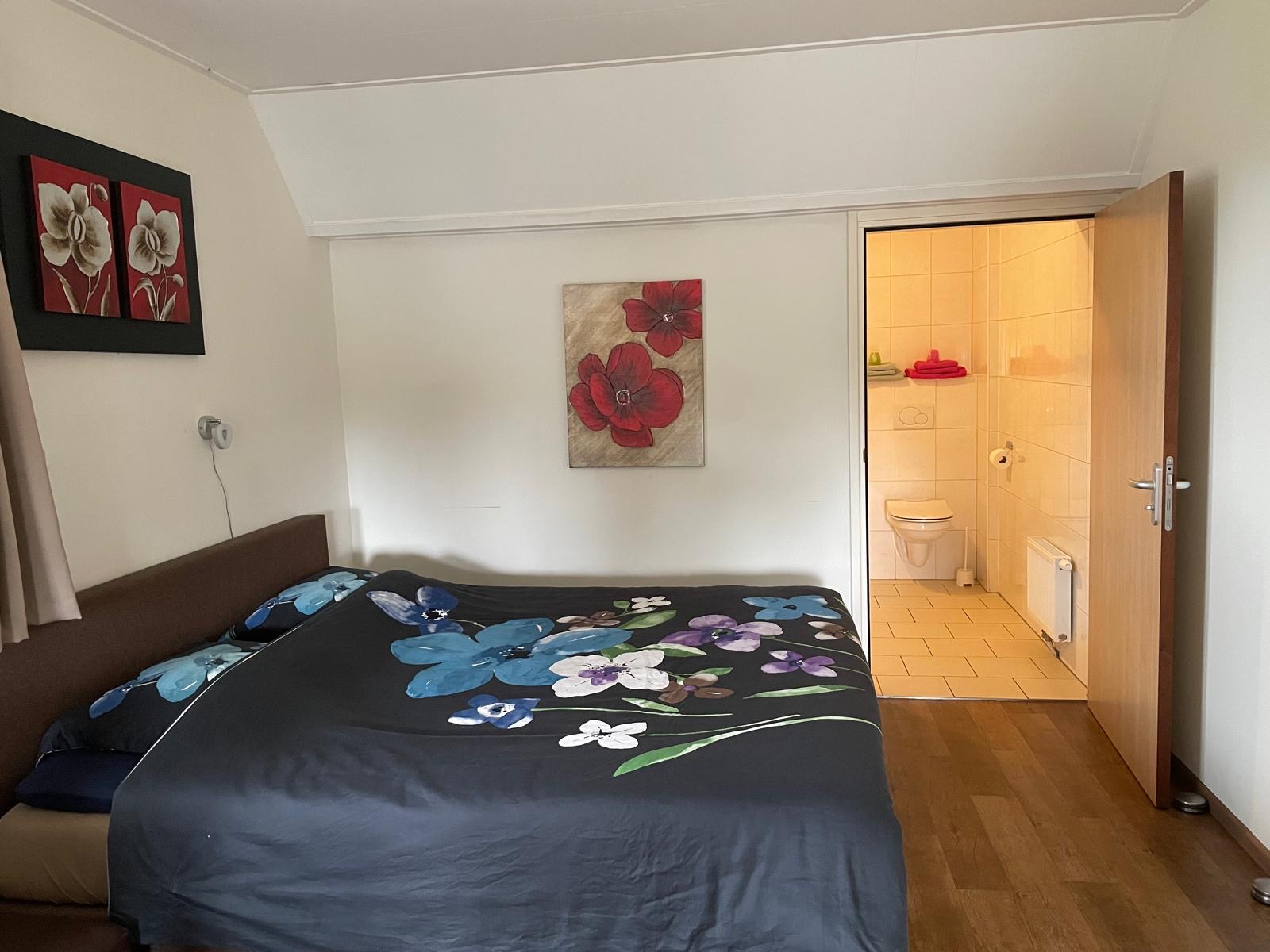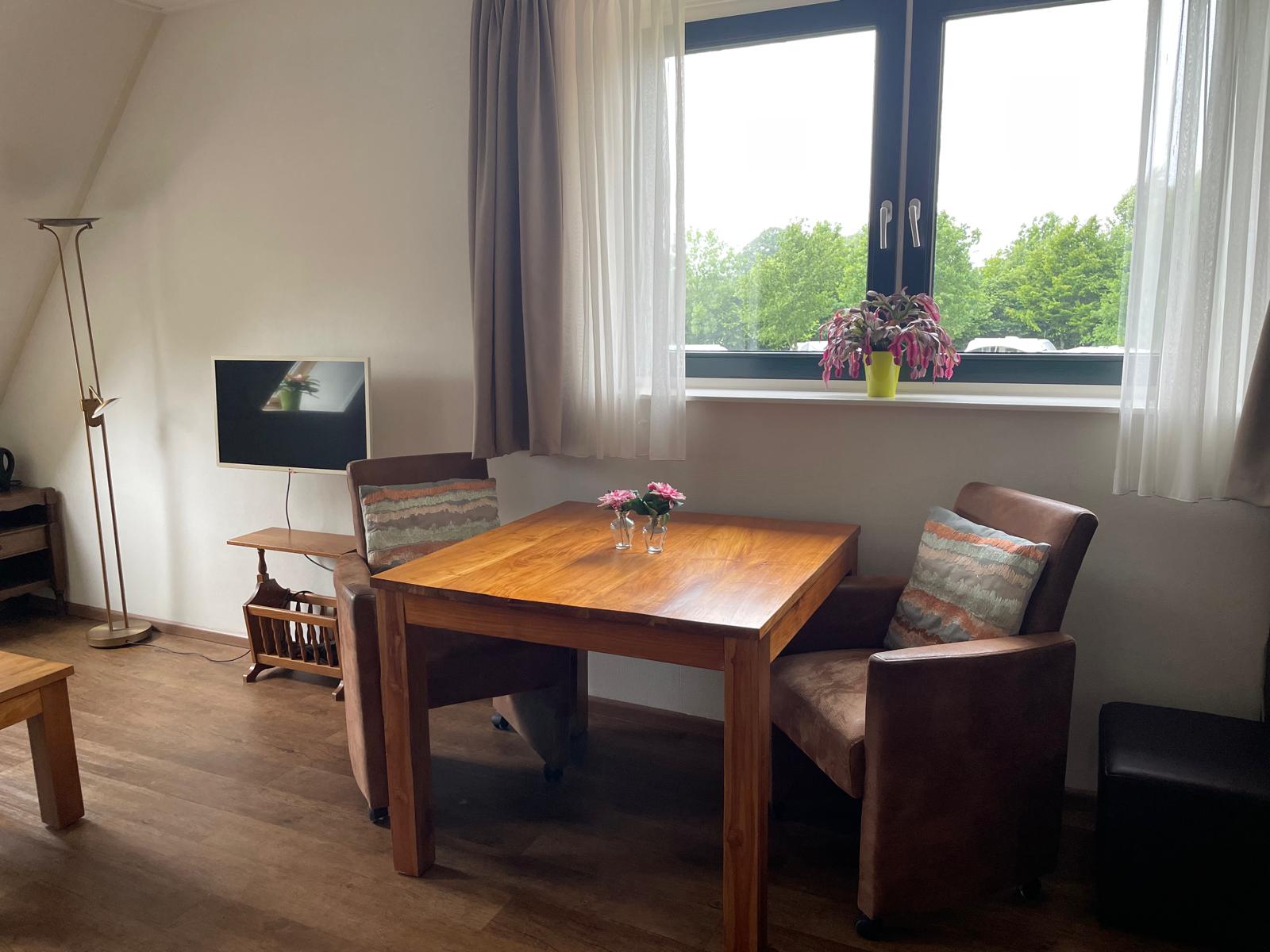 is geschikt voor 2 personen en bestaat uit een zit/slaapkamer met 2-persoons bed (eventueel als 2 gescheiden éénpersoonsbedden op te maken), tafel met 2 stoelen, TV en een badkamer met toilet, douche en ligbad.
