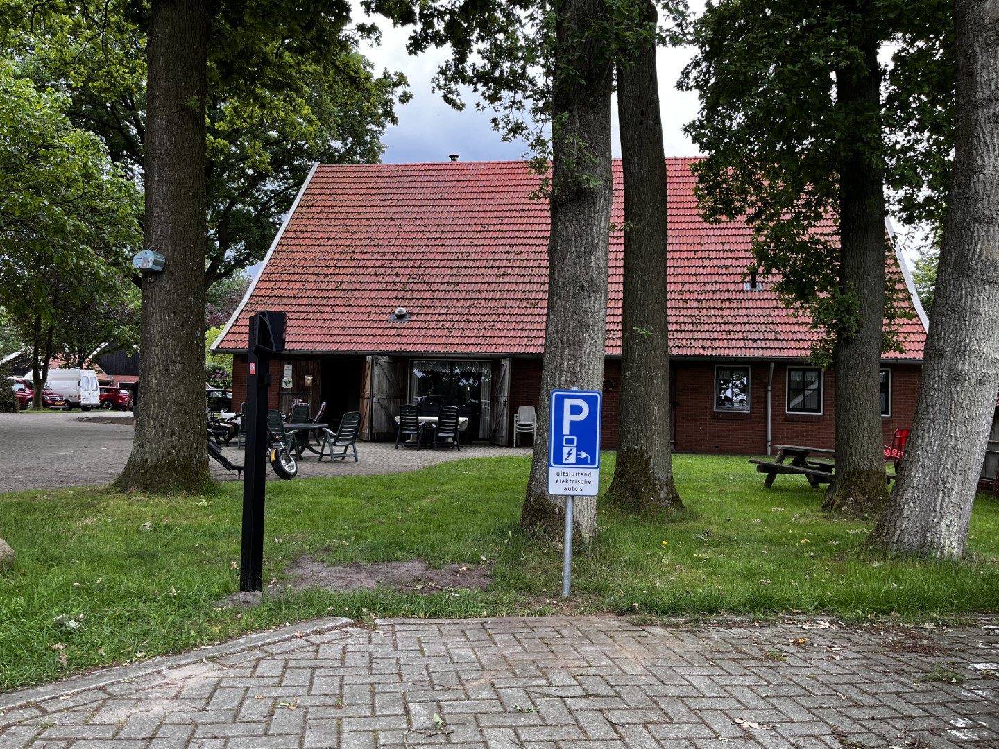 We hebben een laadpaal voor elektrische en hybride auto’s laten plaatsen. Tegen een billijk tarief van € 0,52 per kWh kunnen gasten en bezoekers met een hybride of volledig elektrische auto de accu met een snelheid van 22 kWh/uur opladen.